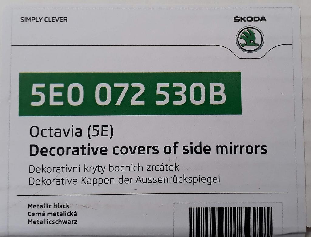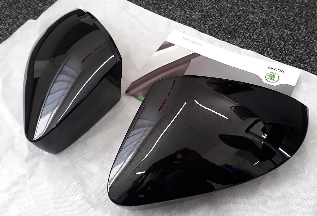 PUR plastové dekorativní kryty zrcátek pro Škoda Octavia III, lakované černá metalíza