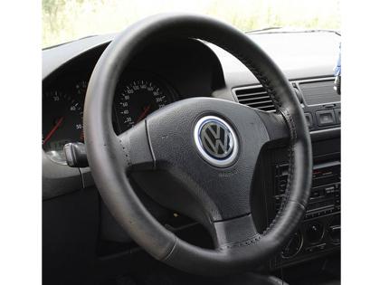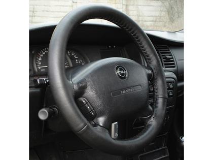 Potah volantu z pravé kůže pro velikost volantu 39-43cm - dodávkové vozy. Černé provedení.