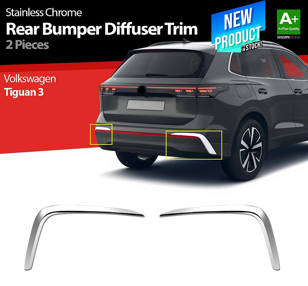 nerez - chrom lišty - difuzory zadního nárazníku pro Volkswagen Tiguan III, od r.v. 2024->>