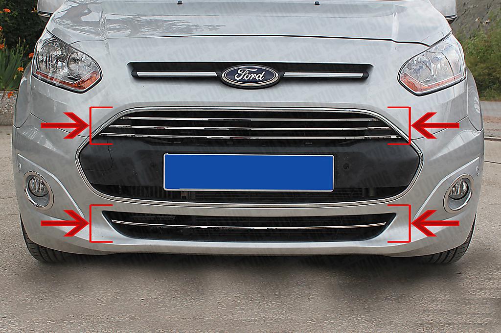 sada (4ks) lišt do předního nárazníku - masky pro Ford Transit Connect, od r.v. 2014->