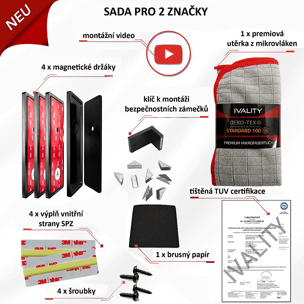 Vaše vozidlo si zaslouží víc než jen obyčejné, objemné plastové držáky na registrační značky s reklamou ! Magnetické držáky na registrační značky IVALITY nejsou jen výrazným prvkem, ale také praktickým řešením, které dodá vašemu vozu nezapomenutelný vzhled. Jsou také perfektním řešením pro rychlou výměnu výstavních nebo vyměnitelných registračních značek.