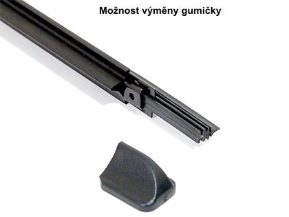 Sada dvou plochých stěračů FLAT (řidič + spolujezdec) se speciálním uchycením. Délky stěračů a systém uchycení na ramínko jsou přizpůsobeny vybraným vozům. Vysoce kvalitní pružný člen plochého stěrače zajišťuje stejnoměrný tlak grafitového břitu v celé jeho délce, což zamezuje rozmazávání nečistot a vytváření pruhů. Tento typ plochého stěrače umožňuje výměnu gumičky.
