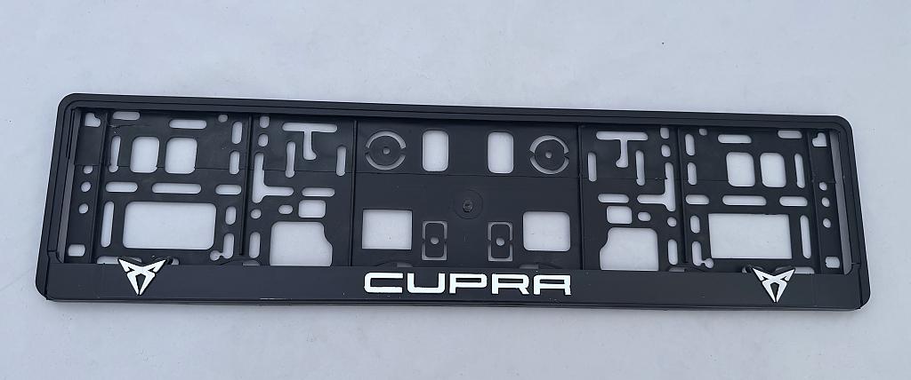 kvalitní, plastový držák SPZ s 3D nápisem CUPRA - chrom