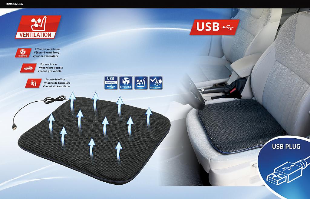 Podsedák tak stačí položit na křeslo v kanceláří, ve vozidle, nebo jinde na místech s přístupem k USB zásuvce a užít si příjemného chlazení. Podsedák je možné používat i ve vozidlech se sedadly se zabudovaným airbagem.