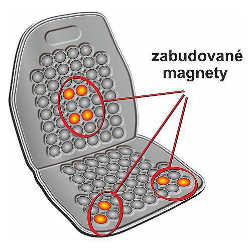 Masážní potah na sedadlo automobilu se zabudovanými magnety a s univerzálním systémem upevnění.